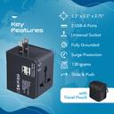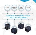 The universal socket accepts your 2-pin or a 3-pin plug from almost any country including the Indian plugs. It also features 2 USB ports 5V/2.1A total, which can be used to charge USB devices simultaneously.