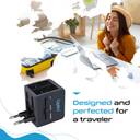 Universal plug for charging your cell phones, MacBook, Laptops, tablets, cameras, GoPro. Ability to charge 3 devices at once with 2 USB ports.
