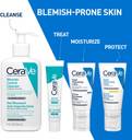 Say hello to blemish-free, smooth, and happy skin with CeraVe Blemish Control Cleanser. Featuring 2% salicylic acid, niacinamide, and three essential ceramides, this gel-to-foam facial cleanser unclogs pores and corrects acne and blemishes. The Oil-Absorbing Technology helps clear oil for a spotless appearance. Dermatologically-tested and suitable for blemish- and acne-prone skin, the formula, which includes 2% salicylic acid, niacinamide, three essential ceramides, and hyaluronic acid, helps reduce breakouts in one week without disrupting the skin barrier. This cleanser tackles blackheads and acne, reduces the appearance of blemishes, acne, and pores, and keeps your skin hydrated. It is a gentle exfoliating cleanser that sloughs off dead skin cells to prevent clogged pores—the primary cause of blemishes. The Oil-Absorbing Technology helps minimize shine and remove excess oil while the patented MVE Delivery Technology delivers 24-hour hydration. CeraVe Anti-Blemish Face Wash starts as a gel and transforms into a foam when mixed with water. This CeraVe 2% Salicylic Acid Cleanser is dermatologically-tested, optimized for daily use, and ideal for blemish-prone skin.