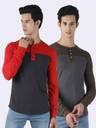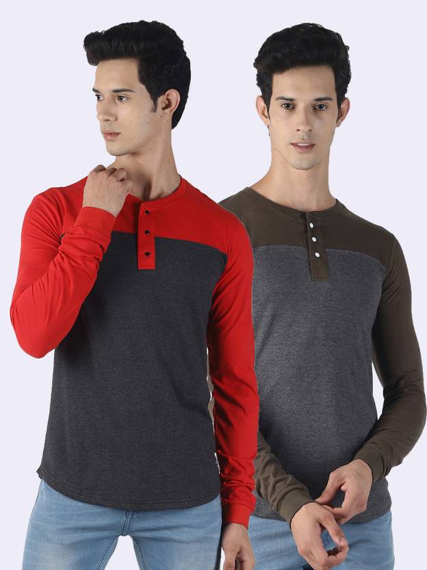 Pack of 2 Men Colorblock Henley Neck Pure Cotton Multicolor T-Shirt