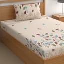 CG Homes Cotton Single Flat 180 TC Printed Bedsheet (Pack of 1, BEIGE MULTI)