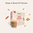 Experience the authentic flavors of India’s favorite chai styles in one convenient pack. Chai Point’s Mixed Classic Instant Tea Premix contains 20 single-serve sachets – 5 each of Masala, Ginger, Cardamom, and Classic tea variants. Made with premium Assam tea, real spices, and milk solids, this assortment brings you the richness and aroma of your favorite chai anywhere, anytime.