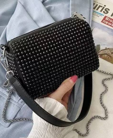Name: black women hand Bag Purse Shoulder Bag with Acrylic Chain Crossbody bag for Sweet Girl