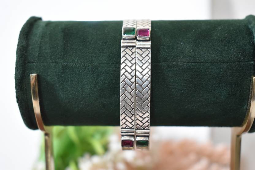925 pure silver green and red cutstone sequance everyday wear silver kada