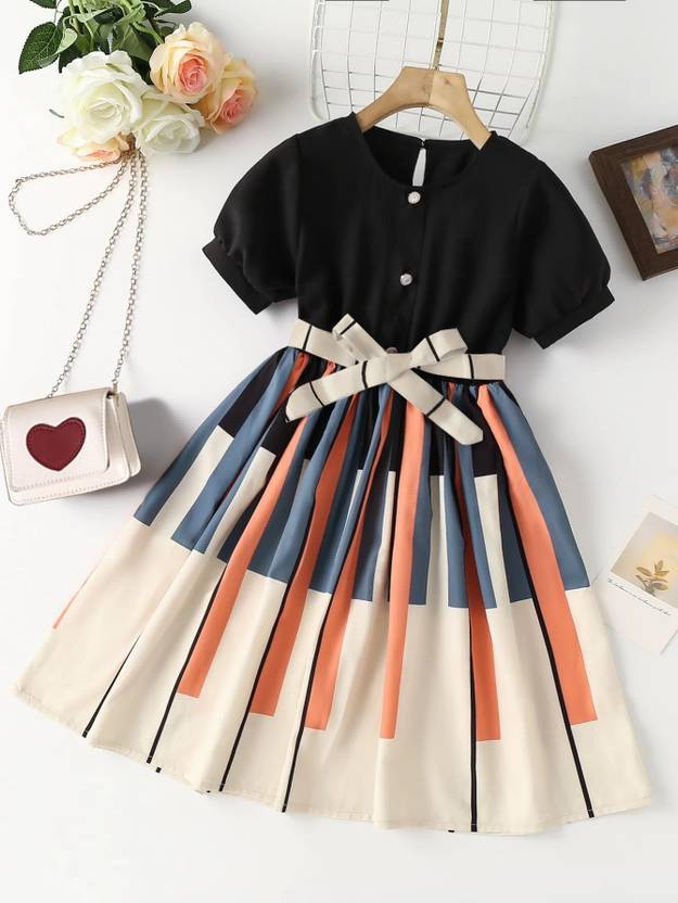 CHAKALI Indi Girls Midi/Knee Length Party Dress (Black, Full Sleeve)
