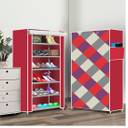 Chalia Plastic Collapsible Shoe Stand (23|Red Diamond Wall, 6 Shelves, DIY(Do-It-Yourself))