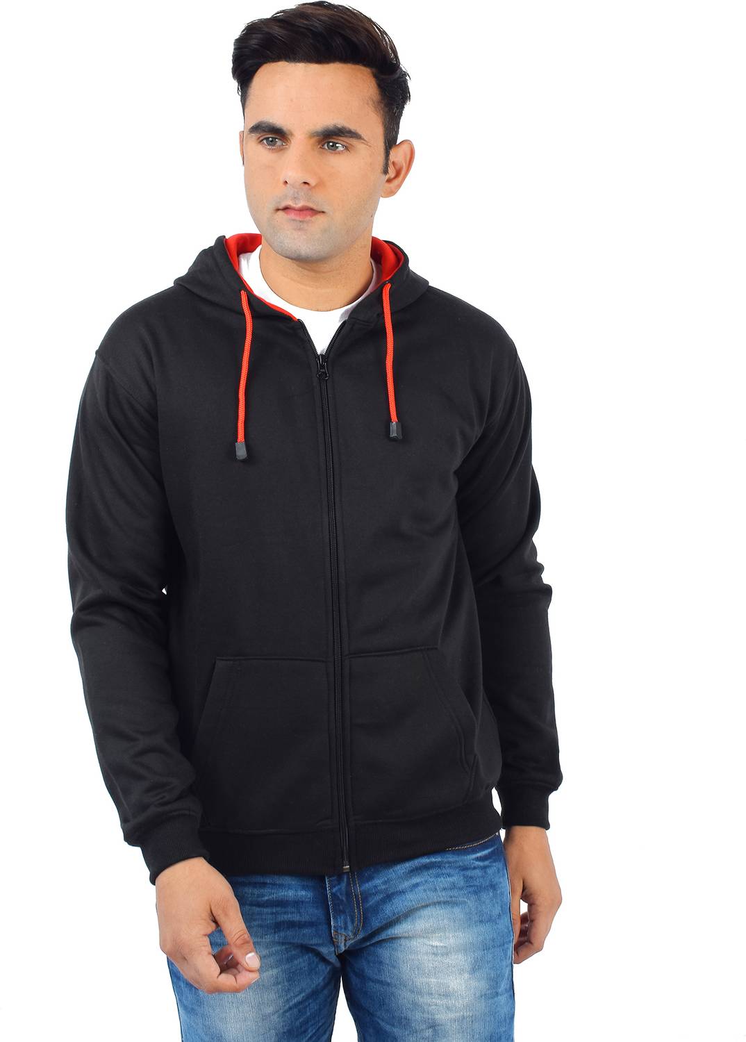 Hooded, Trendy Sweatshirt, Typographic Sweatshirt, Solids, Zippered