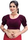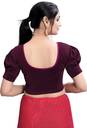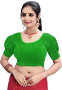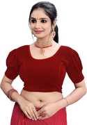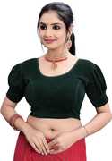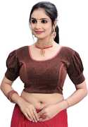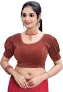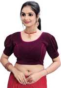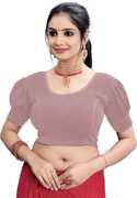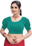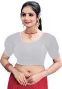 Round Neck Dobby Cotton Lycra Stretchable ballon Sleeve Readymade Saree Blouse for Women