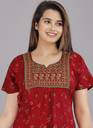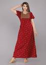 FREE SIZE FIT TO BUST 40-L/42-XL/44-XXL, Put on this brand-new, fashionable cotton nightgown with a round neck, half-comfortable sleeves, and an embroidered yoke pattern. It is one of the best options for restful sleep because of its smooth and calming feel. 54 INCH IS THE LENGTH