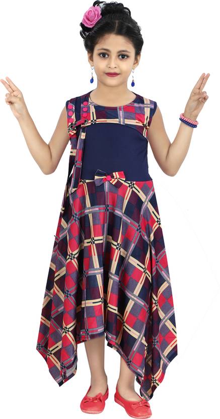 Grant your little girl a chance to dress in style with this trendy asymmetrical dress from Chandrika. It has been made with quality fabric keeping your princess in mind, to keep her at ease and comfortable throughout the day. Moreover, it features a checkered pattern around the neck and on the skirt, is embellished with buttons and appliqué for style, and the skirt has an asymmetrical flare which adds to its uniqueness. A must-have for the post lockdown blues.
