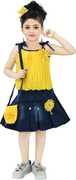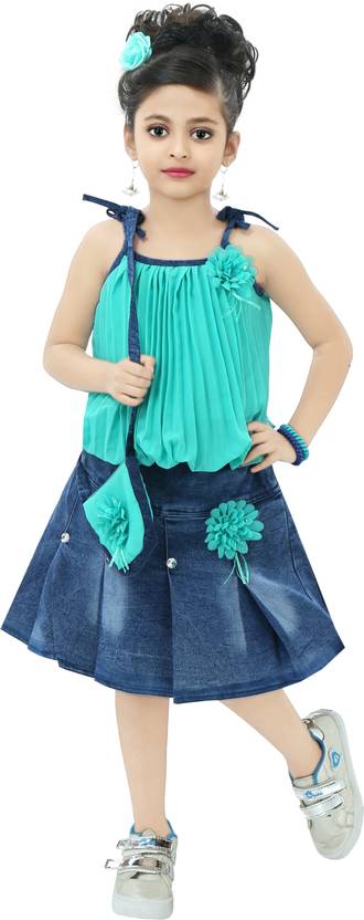 Make your little one look super cute and adorable as you dress her up in this dress from the house of Chandrika. Made of cotton and denim, this skirt top with matching bag is soft and super comfortable to wear. This dress will look perfect when teamed with ballerinas