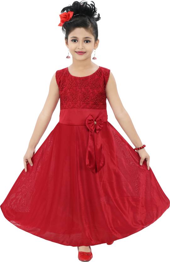 Style your baby girl in this classy maroon gown from the house of Chandrika. Made of satin, this dress is a style statement for any occasion. It will look perfect when teamed with matching ballerinas.