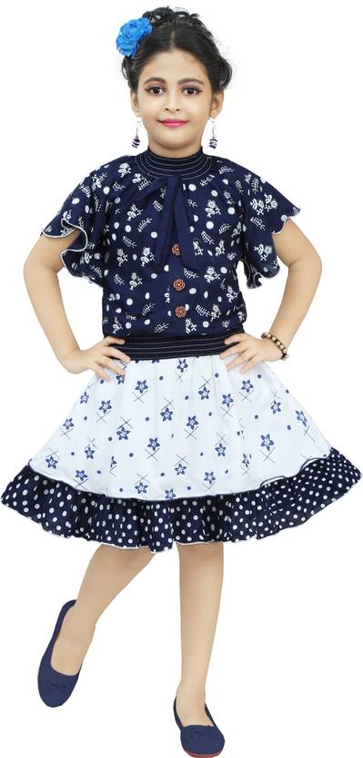 Enhance your daughter’s wardrobe with this trendy skirt-top set from Chandrika that offers both style and comfort. The Fit and flare top is adorned with cute frills and buttons for design. The Skirt has a mid length flare with foliage print. This unique combination is going to add an oomph factor to your daughter’s style. It is a must have for this festive season.