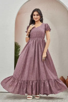 Thanks to its versatile wear option, this gown transitions easily between daytime and evening events. It can be styled simply with sandals for a relaxed look or paired with jewellery and heels for a dressed-up feel. Besides, its graceful fall and gentle detailing make it adaptable for parties, get-togethers, or festive gatherings. Consequently, it becomes a wardrobe piece that blends comfort with understated elegance.