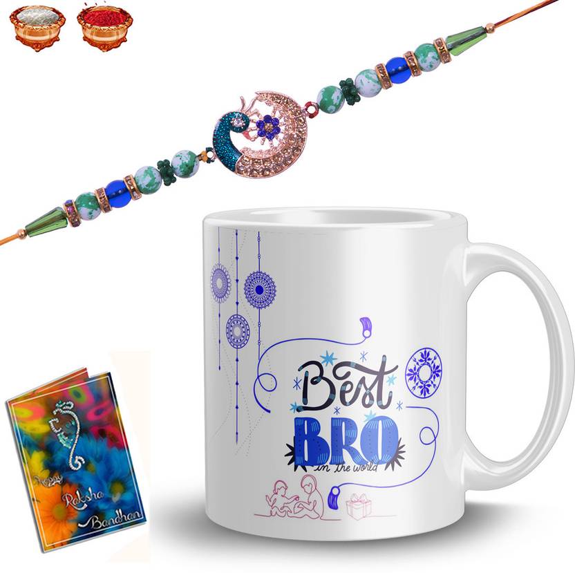 1 Printed Coffee Mug, 1 Designer Rakhi, 1 Roli Chawal Packet, 1 Best Wishes Card