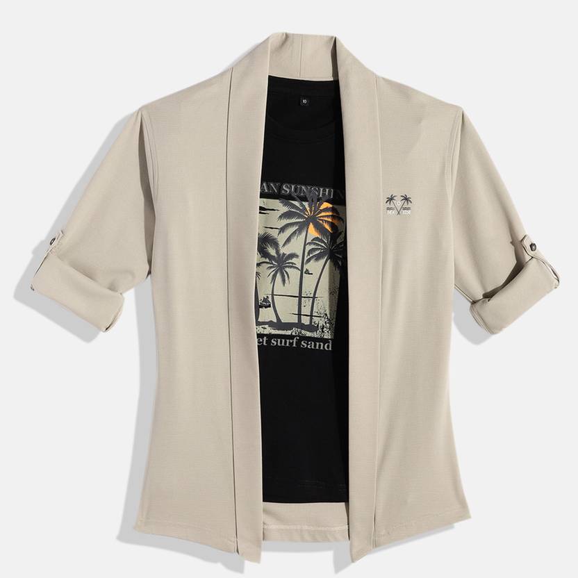 The CHARCHIT Boys Cotton Blend Full Sleeves Solid Shrug with Printed T-Shirt is a trendy and comfortable outfit that combines style with practicality. Crafted from a soft cotton blend, the shrug features long sleeves in a solid color Lapel Collar,Ideal for casual outings or playtime, this set provides both warmth and style, offering a versatile layering option that pairs well with jeans or shorts.