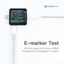 E-marker Cable Test It can test if your USB-C cable has an E-marker chip. By reading the E-marker chip information inside the cable, you can obtain the maximum power, transfer speed, and other information.