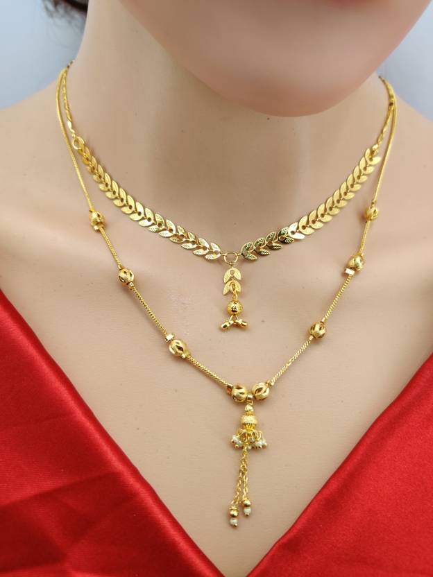 Micro Gold Plated White American Diamond Beautiful Daily Wear Designer Necklace Golden Chain Pendant for Women and Girls Diamond Gold-plated Plated Alloy NecklaceSales Package - Pack of 1 Micro Gold Plated White American Diamond Daily wear Necklace Chain.Total Length - 18 inch.