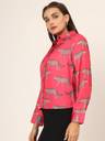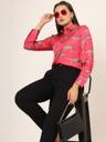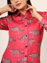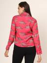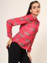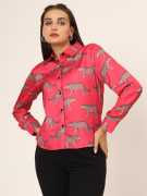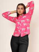 Magenta shirt for women Animal printed Spread collar Button placket Long, regular sleeves Curved hem
