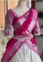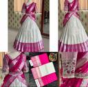 Solid, Self Design Semi Stitched Lehenga Choli (White, Pink)