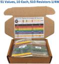 Charohm CH51V10P Resistor Kit 51 Values 10 Each 1/4 Watt (510 Resistors) Fixed Resistor (1 ohm, 2200 kilo ohm 5% Tolerance)