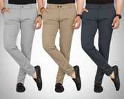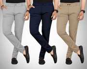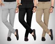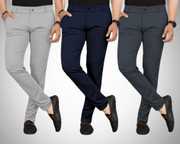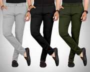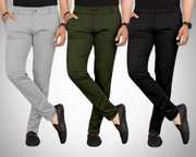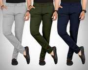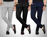Chartou Pack of 3 Men Regular Fit Multicolor Lycra Blend Trousers