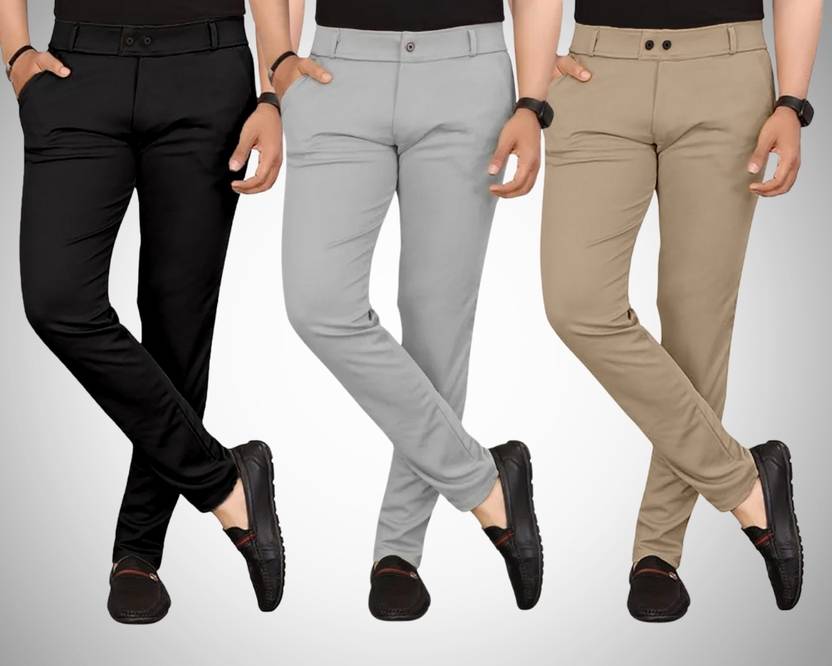 Chartou Pack of 3 Men Regular Fit Multicolor Lycra Blend Trousers