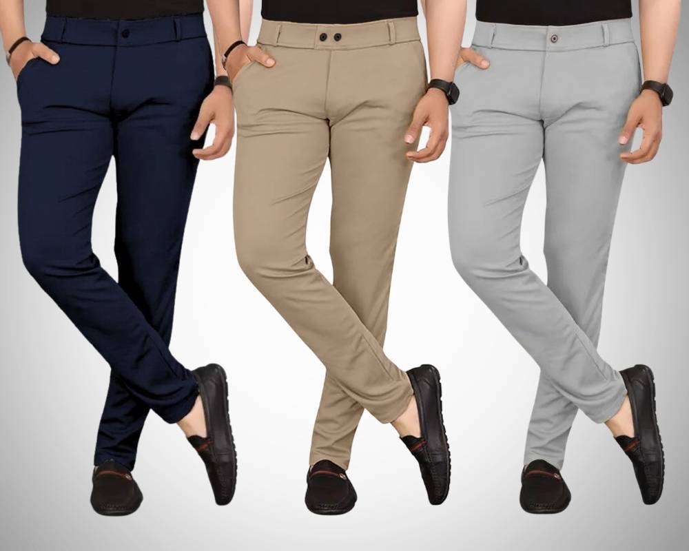 Chartou Pack of 3 Men Regular Fit Multicolor Lycra Blend Trousers