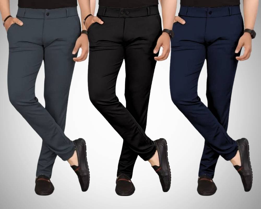Chartou Pack of 3 Men Regular Fit Multicolor Lycra Blend Trousers