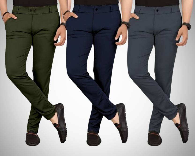 Pack of 3 Men Regular Fit Multicolor Lycra Blend Trousers