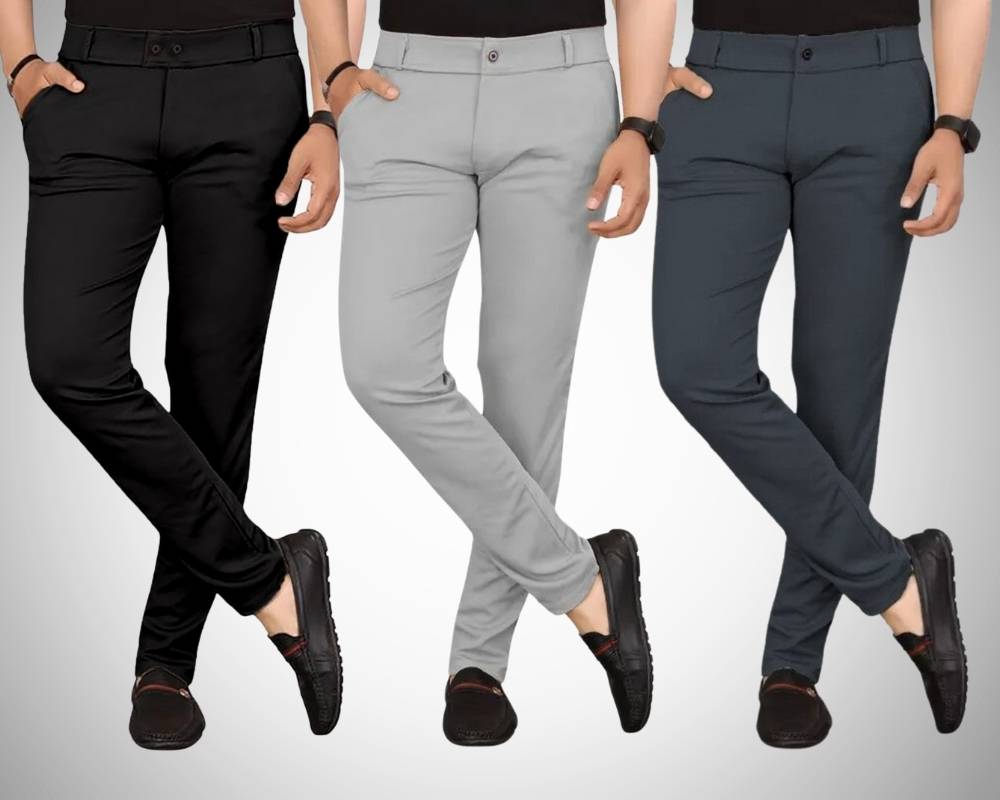 Chartou Pack of 3 Men Regular Fit Multicolor Lycra Blend Trousers