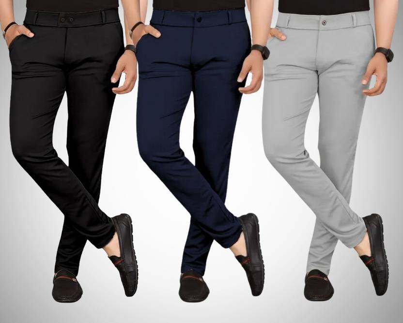 Chartou Pack of 3 Men Regular Fit Multicolor Lycra Blend Trousers