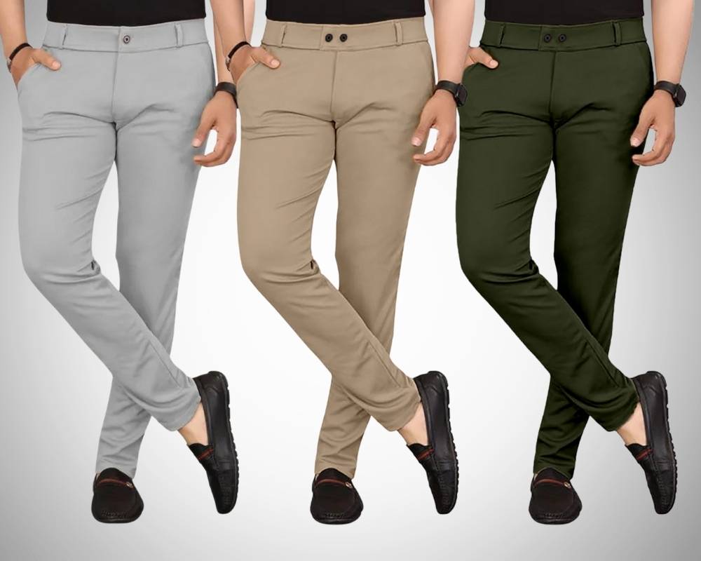 Chartou Pack of 3 Men Regular Fit Multicolor Lycra Blend Trousers
