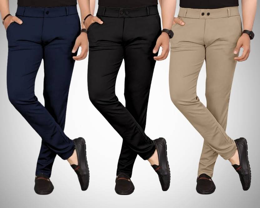 The slim-fit design of these trousers creates a modern silhouette that enhances your overall look. You have the freedom to personalise your look with the inclusion of belt loops. This feature adds a touch of individuality, allowing you to express your unique style effortlessly. The carefully chosen mid-rise provides a balanced combination of comfort and style. These trousers showcase a one-button closure with a zipper which makes them stylish as well as very practical.