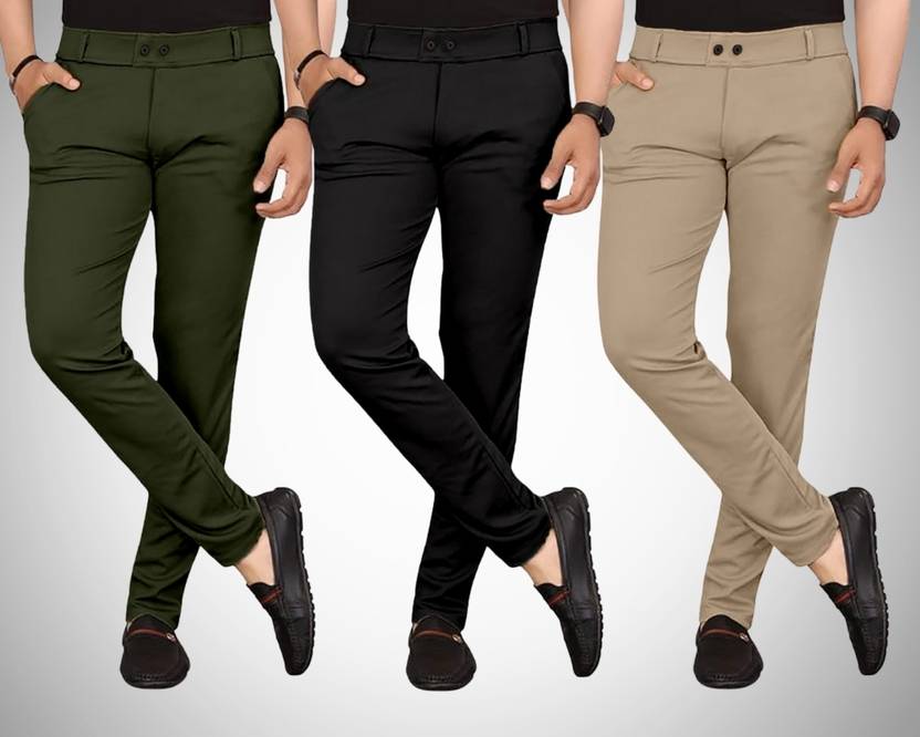 Chartou Pack of 3 Men Regular Fit Multicolor Lycra Blend Trousers