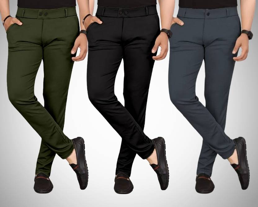 Chartou Pack of 3 Men Regular Fit Multicolor Lycra Blend Trousers