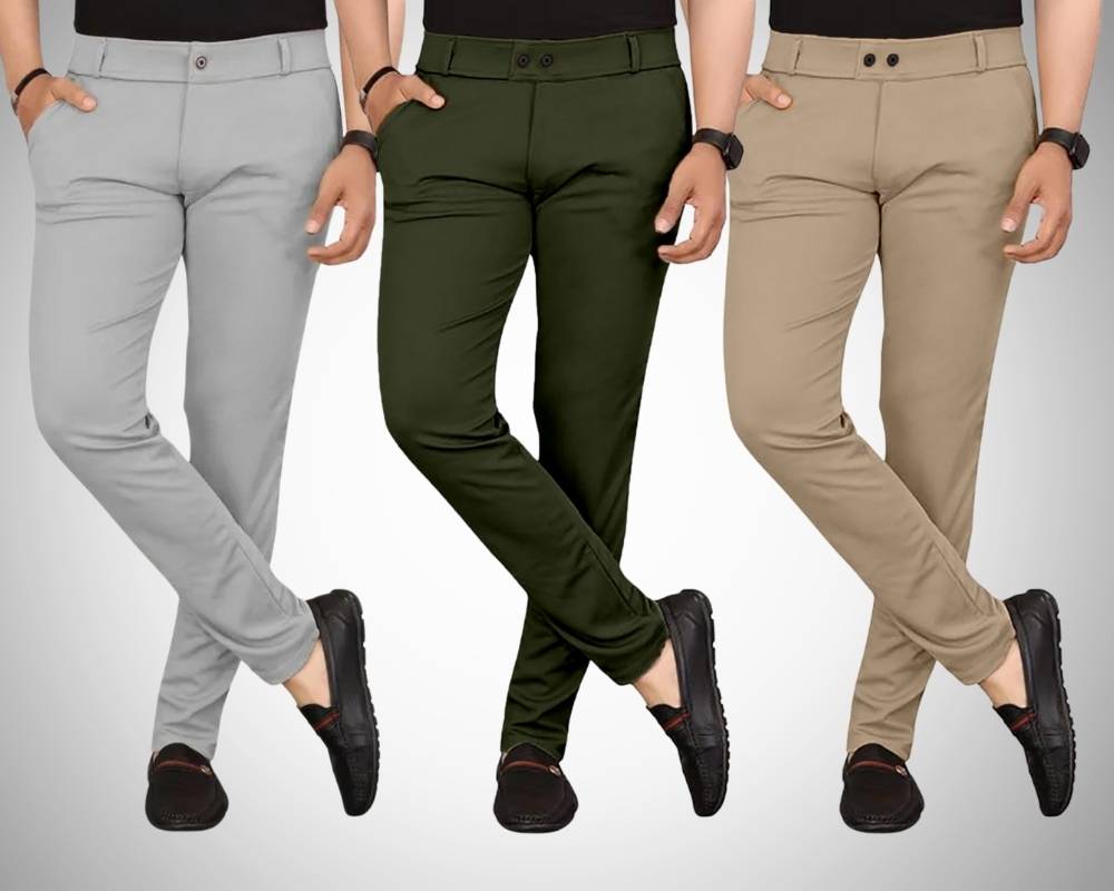 Chartou Pack of 3 Men Regular Fit Multicolor Lycra Blend Trousers