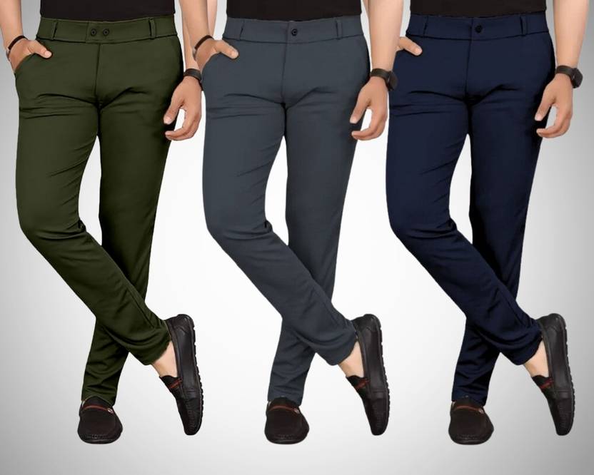 Chartou Pack of 3 Men Regular Fit Multicolor Lycra Blend Trousers
