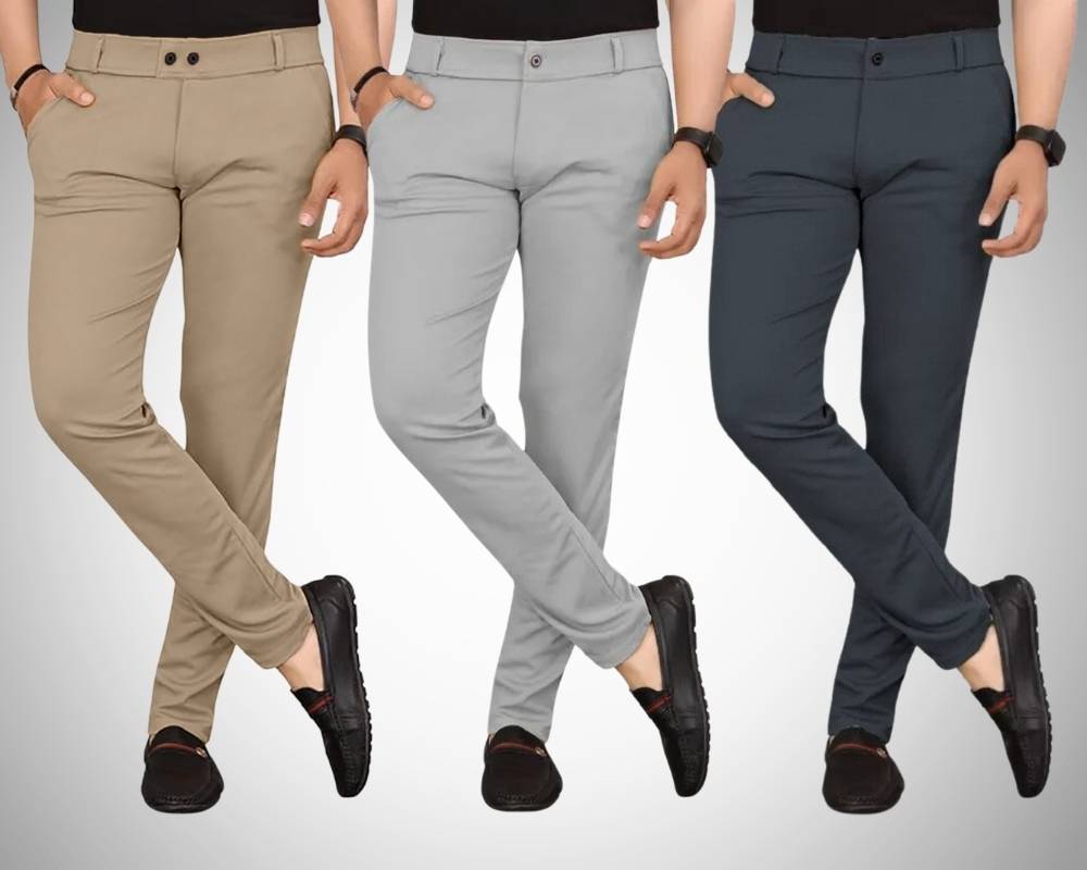 Pack of 3 Men Regular Fit Multicolor Lycra Blend Trousers