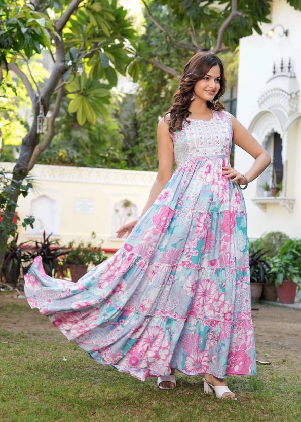 Women's Casual Rayon Printed Anarkali Gown kurta for women