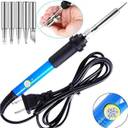 Charvik 60W Soldering Iron Adjustable Temperature and 5 Bits of Different Shapes 60 W Temperature Controlled (Conical, Flat, Pointed, Round Tip)