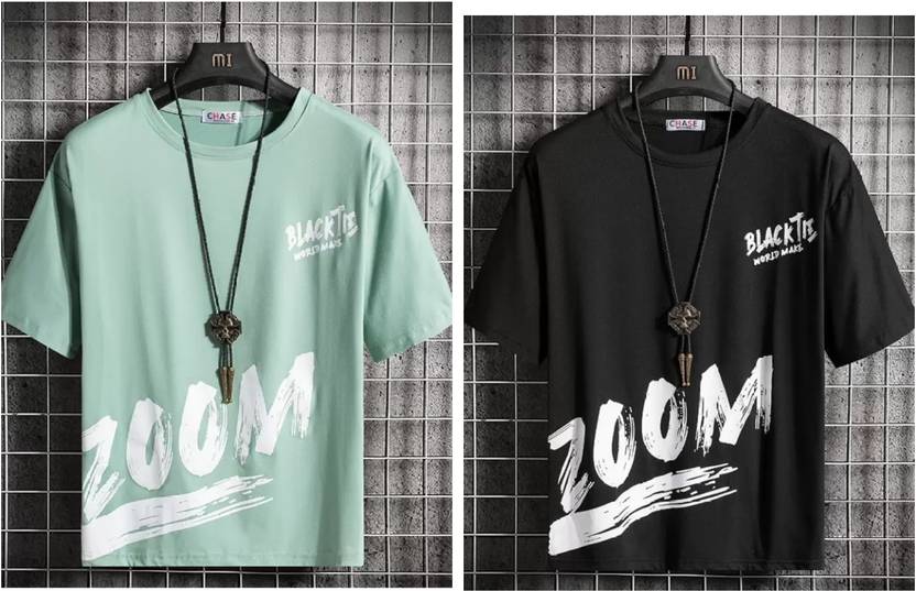 Chase Printed Men Round Neck Light Green, Black T-Shirt
