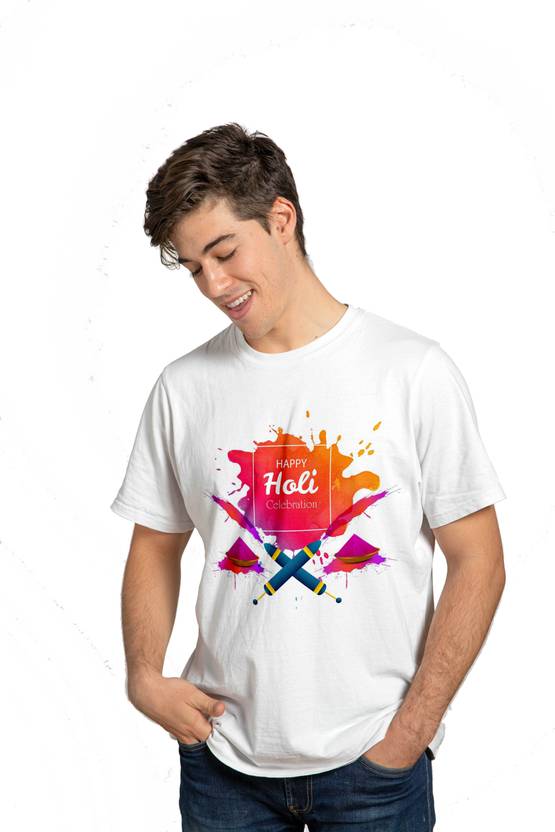 Printed Men & Women Round Neck White T-Shirt Special For Holi
