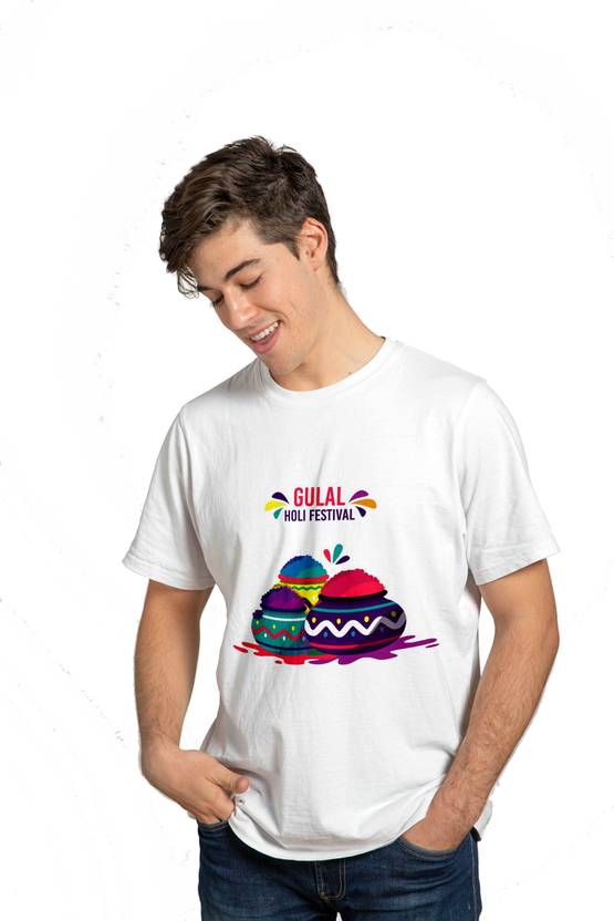 Bura Na Mano Holi Hai With Colours Printed White T-Shirt Graphic Print For Boys & Mens In Round Neck