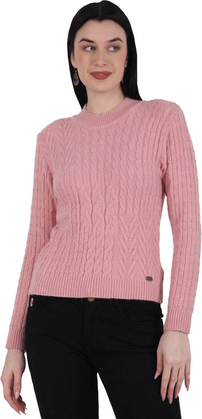 chatanya Self Design Round Neck Casual Women Pink Sweater
