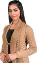 This color blocked tie-up self design longline winter Shrug , has long sleeves, tasselled detail, asymmetric hem. You are going to flaunt as you wear this shrug from the house of Chatanya. Wear it over a sleeveless top and skinny-fit denims or shorts for an ultimate fashion statement. The Shrug has 1 brooch in the Front.
