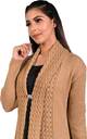 This Light Brown tie-up self design longline winter Shrug, has long sleeves, tasselled detail, asymmetric hem. You are going to flaunt as you wear this shrug from the house of Chatanya. Wear it over a sleeveless top and skinny-fit denims or shorts for an ultimate fashion statement . The shrug has 1 brooch in the Front.