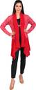 Red solid waterfall longline shrug with tie-up detail, has long sleeves, straight hem. Distinctly youthful and feminine, this shrug from CHATANYA adds a touch of elegance to your outfit. Layer it over a tank top or a dress for a chic appeal.