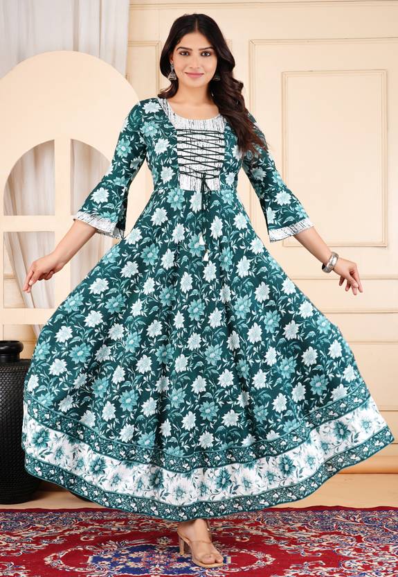 SATLOK CREATION Floral Print Viscose Rayon Stitched Anarkali Gown (Green)