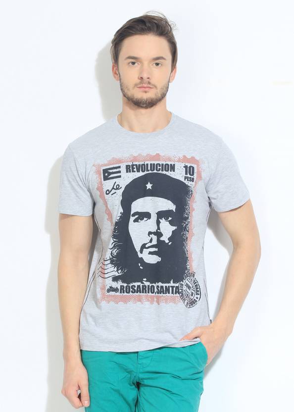 Men Printed Round Neck Cotton Blend Grey T-Shirt